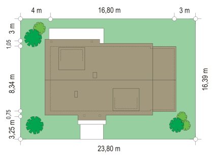 - Min. wymiary działki 23.80x16.39 m