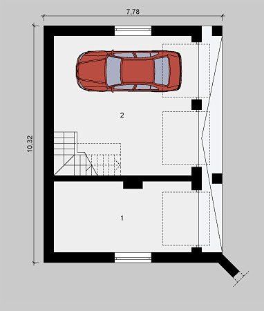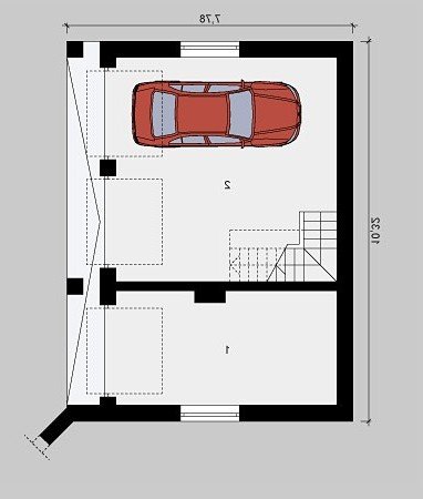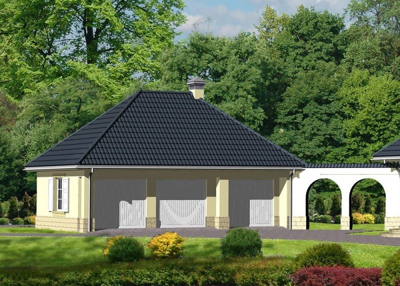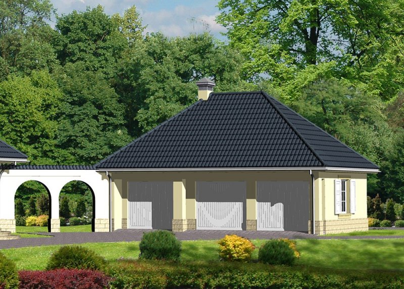 Budynek gospodarczo-garażowy z poddaszem użytkowym, z miejscem na dwa samochody oraz pomieszczenie gospodarcze.