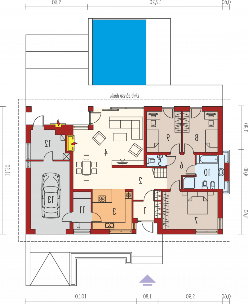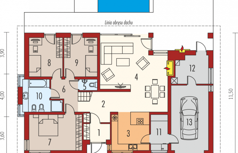 Dach: konstrukcja drewniana, ocieplenie wełna mineralna 30 cm, dachówka cementowa