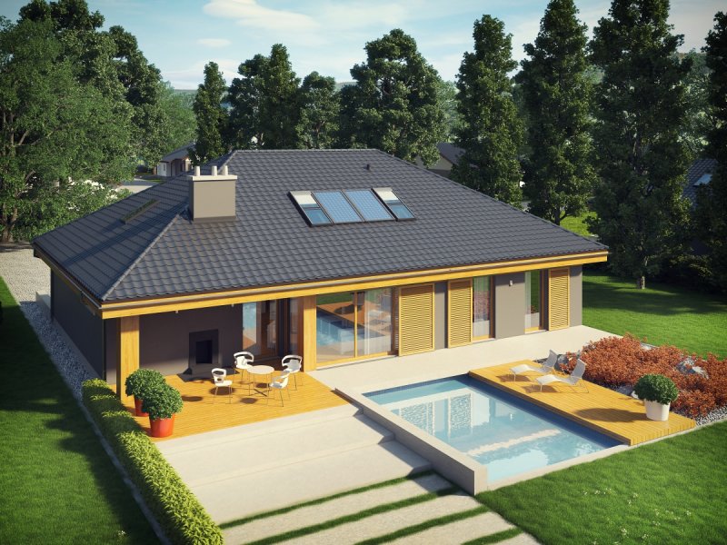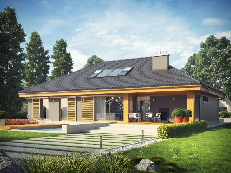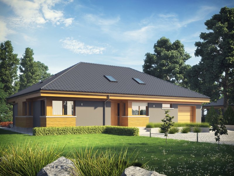 Gabriel G1 MULTI-COMFORT to dom, który przyciąga uwagę atrakcyjną formą oraz niepowtarzalną elewacją – szlachetna misktura chłodnej szarości i ciepłego drewna tworzy wyjątkowy efekt. Wnętrze skrywa jasne i przestronne pomieszczenia, które z pewnością zadowolą miłośników domowego komfortu i sprawdzonych rozwiązań funkcjonalnych.
