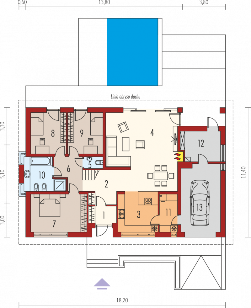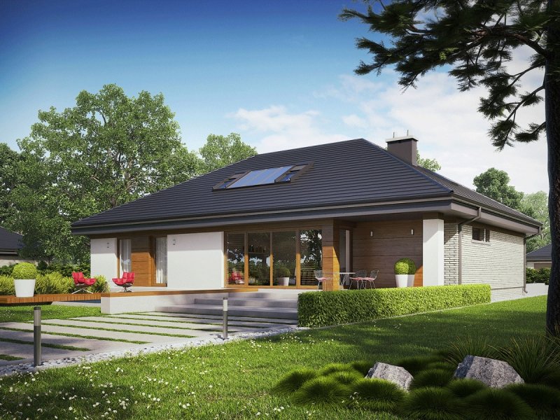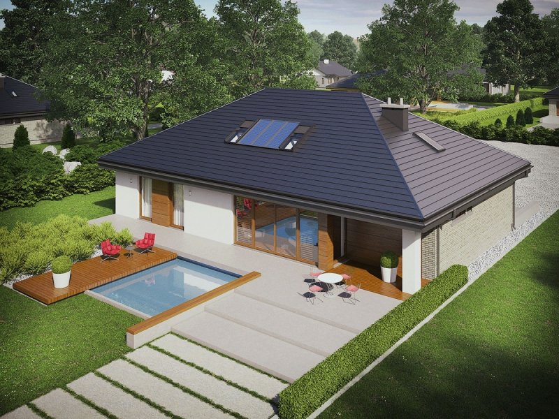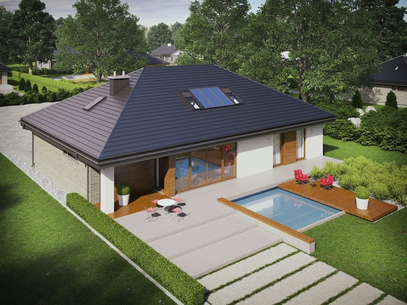 Dom Gabriel II G1 ENERGO łączy atrakcyjny wygląd zewnętrzny z optymalnie zaprojektowanym układem pomieszczeń. Serce domu, tętniące życiem mieszkańców, tworzą wspólnie salon oraz sąsiadujące z nim kuchnia i jadalnia. Strefa nocna została wyraźnie oddzielona, zapewniając domownikom kameralną, wyciszoną przestrzeń. Ogromnym atutem projektu jest poddasze do późniejszej adaptacji, które w zależności od indywidualnych potrzeb rodziny może pełnić funkcję sypialni, wyciszonej pracowni, pokoju dla gości, siłowni lub kina domowego. Na szczególną uwagę zasługuje również nowoczesna kompozycja elewacji, która ubiera formę budynku w efektowne ramy.