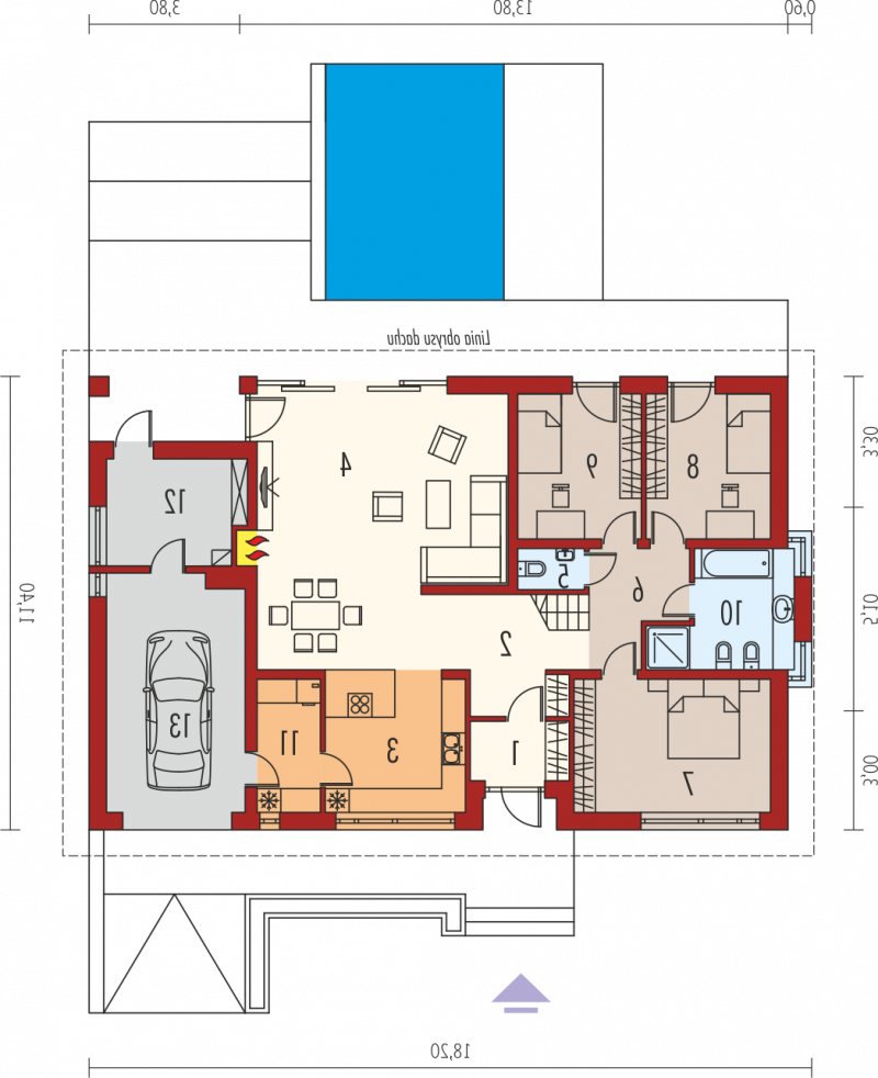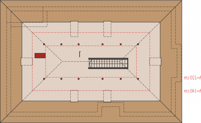 Dach: konstrukcja drewniana, ocieplenie wełna mineralna 30 cm, dachówka płaska lub inna o podobnych parametrach