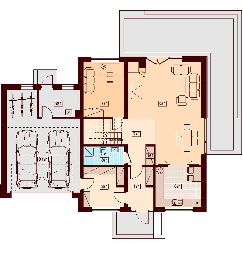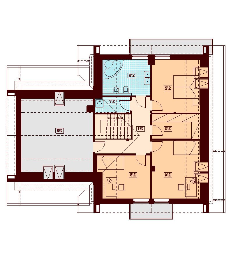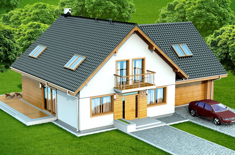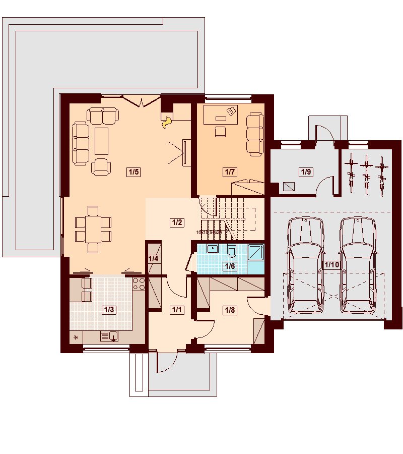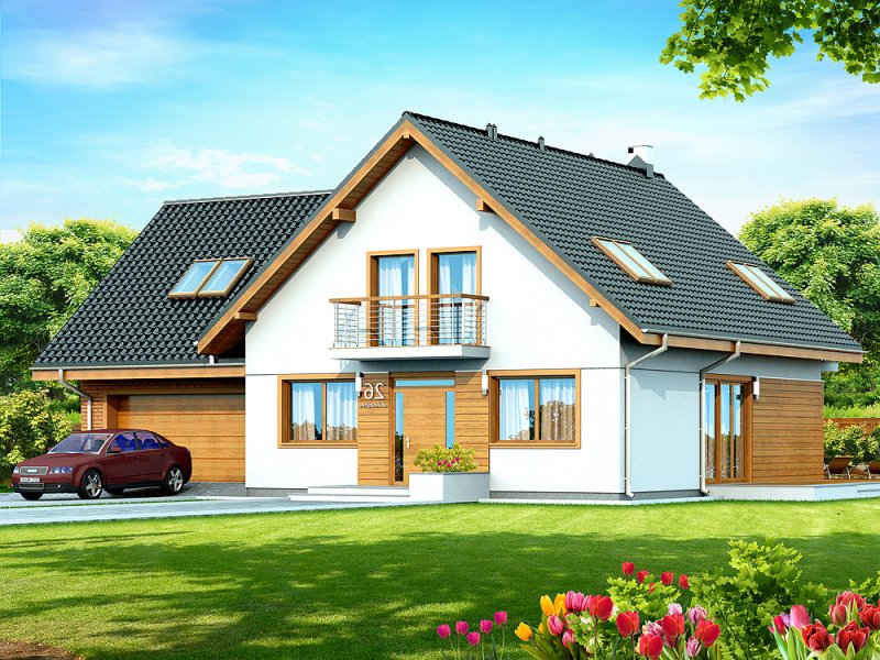 Galilea 2M to funkcjonalny, piękny dom przeznaczony dla 3-6 osobowej rodziny o eleganckiej formie i współczesnej estetyce oraz prostej i taniej, dokładnie przemyślanej konstrukcji. Jest to dom parterowy z użytkowym poddaszem, niepodpiwniczony, z garażem dwustanowiskowym. Na parterze zlokalizowana jest obszerna strefa dzienna składająca się z kuchni (która w zależności od potrzeb może być zamykana lub otwarta) jadalni oraz salonu otwartego na taras i ogród. Dzięki doświetleniu strefy dziennej zarówno od strony ogrodu jak i z boku dom nadaje się na każdą działkę, zarówno z wjazdem od północy jak i od południa, wschodu bądź zachodu. Uzupełnieniem kuchni jest mała spiżarnia/schowek. Dodatkowo na parterze zaprojektowano pokój, który może służyć jako pokój gościnny bądź gabinet, łazienkę oraz garderobę / schowek z przejściem do garażu oraz pomieszczenie gospodarcze (kotłownię) dostępną z garażu z wyjściem na ogród dzięki czemu może ona stanowić też miejsce składowania narzędzi ogrodowych. W wiatrołapie przewidziano miejsce na szafę wnękową. Na poddaszu znalazły się trzy pokoje, garderoba oraz obszerna łazienka, pralnia/suszarnia a także strych z możliwością przeznaczenia na dodatkowy pokój, siłownię czy saunę. W projektowaniu Galilei 2M szczególną uwagę zwrócono na atrakcyjny wygląd zewnętrzny, proporcje, odpowiednie doświetlenie i funkcjonalne rozplanowanie pomieszczeń przy zachowaniu prostoty konstrukcji.