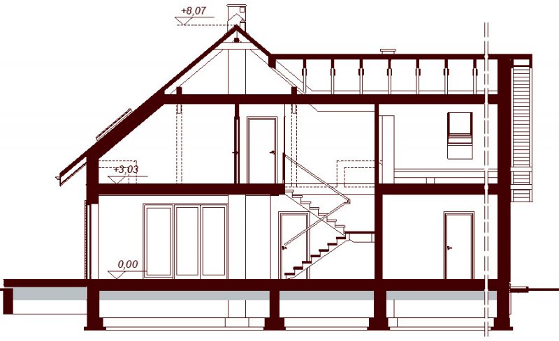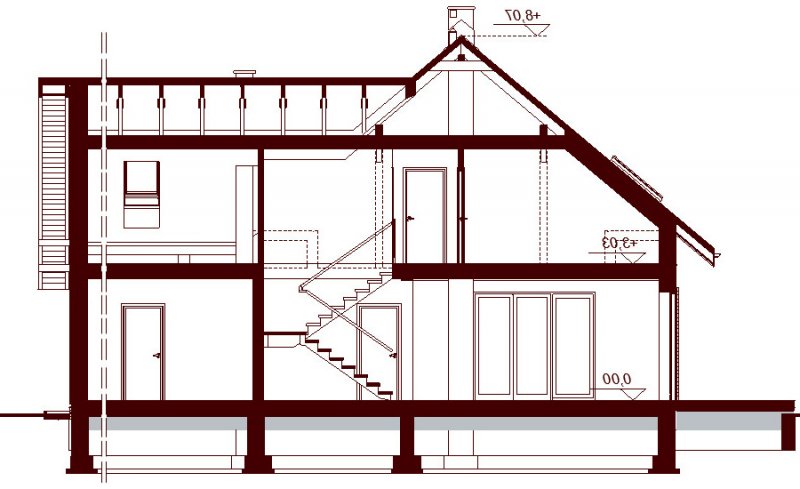 Ściany zewnętrzne i wewnętrzne nośne z betonu komórkowego (24cm), docieplone (15cm). Ścianki wewnętrze działowe na parterze z bloczków, na poddaszu z płyt GK bądź z bloczków. Ściany fundamentowe z bloczków betonowych. Strop gęstożebrowy Teriva. Wszystkie technologie można zmienić na etapie adaptacji.