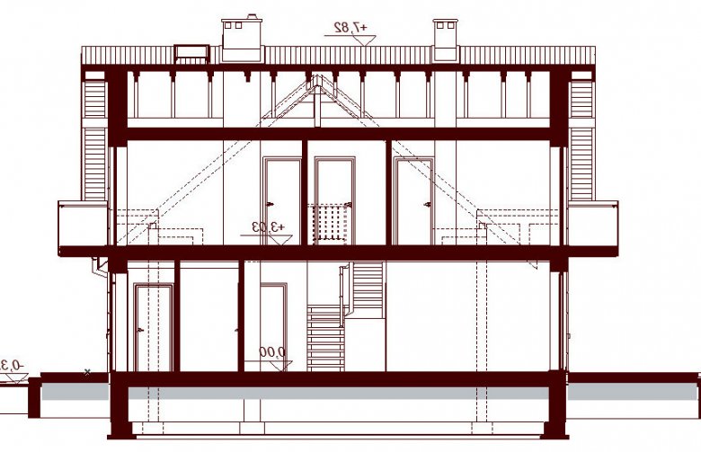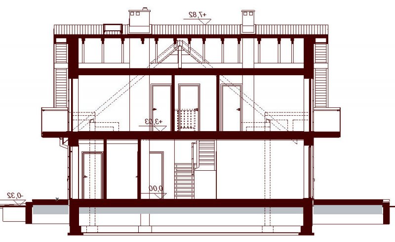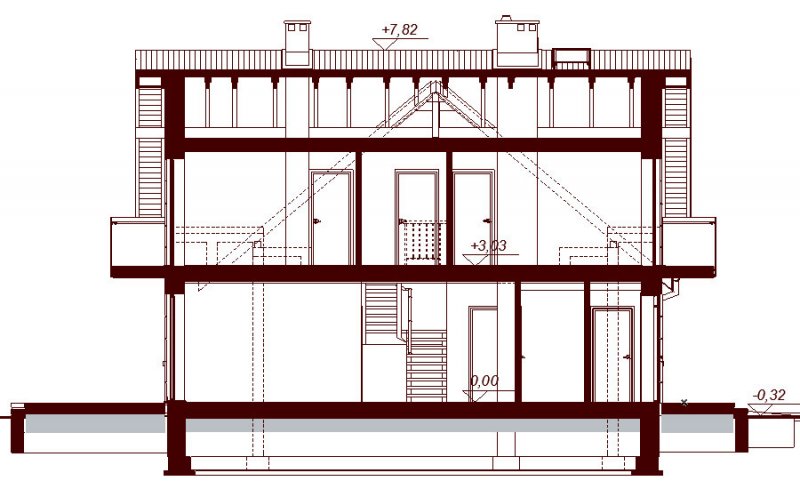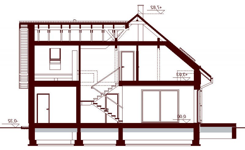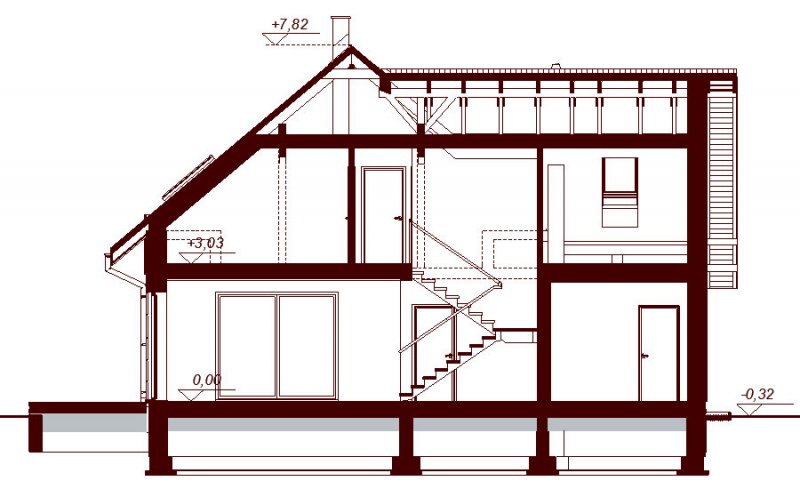 Ścianki wewnętrze działowe: na parterze z bloczków, na poddaszu z płyt GK bądź z bloczków.