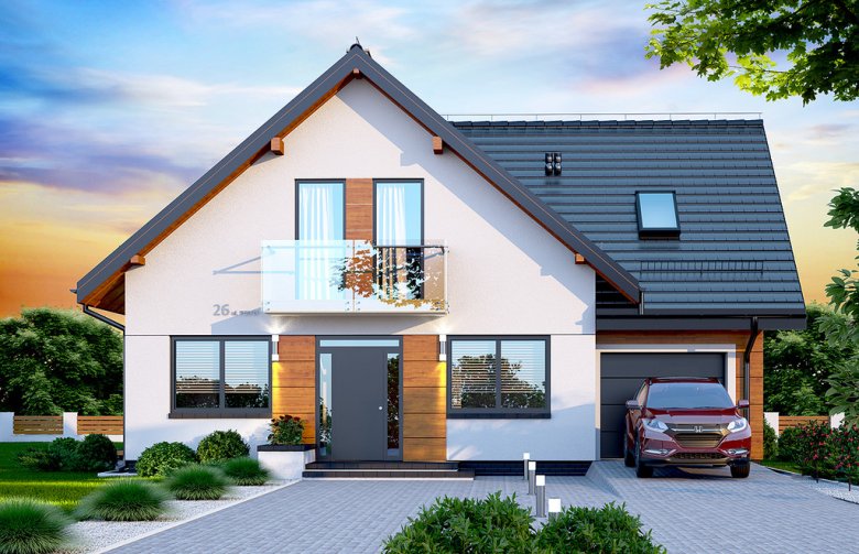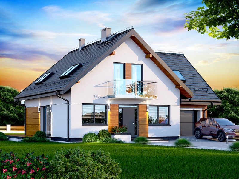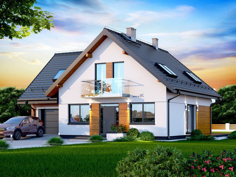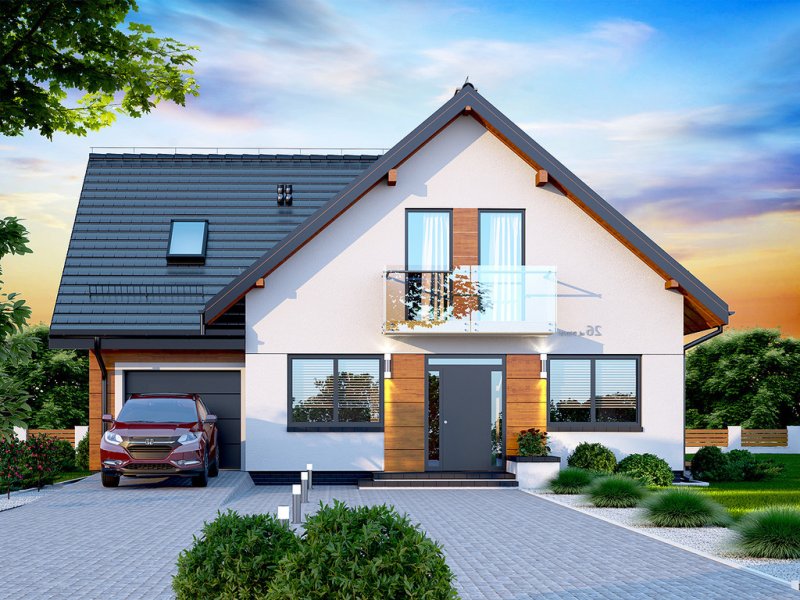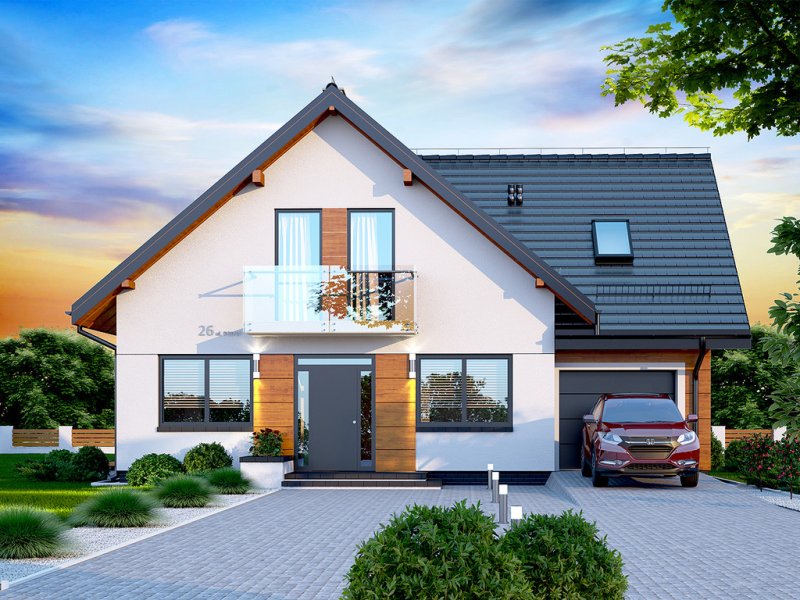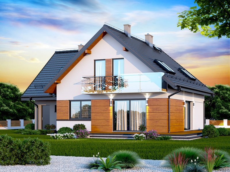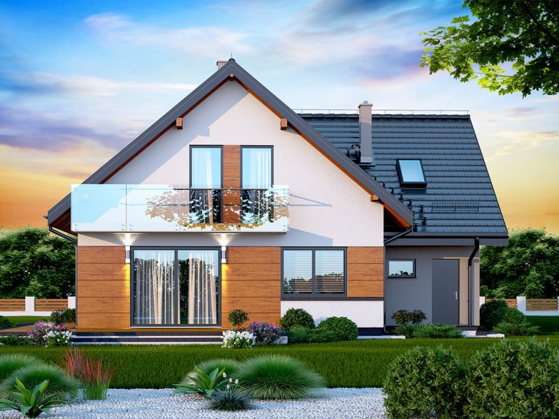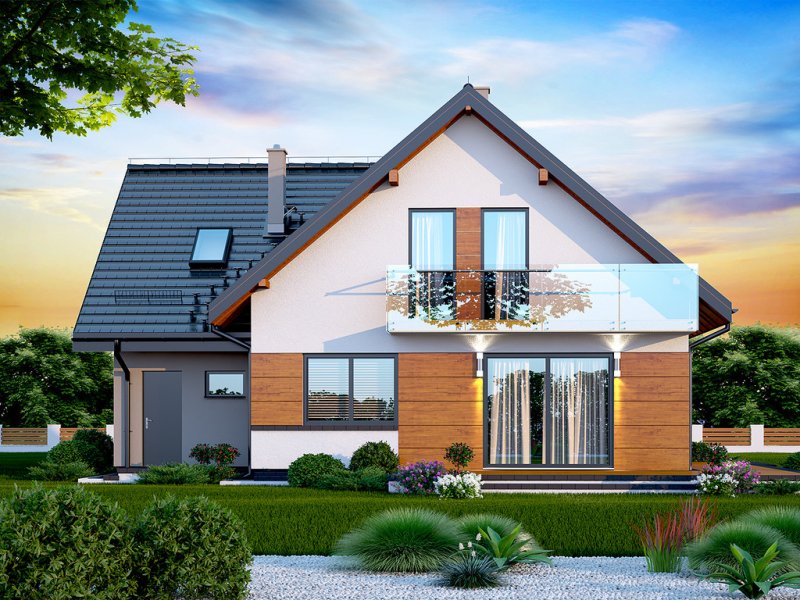 Elewacje: wykończone tynkiem mineralnym malowanym farbą silikatową.