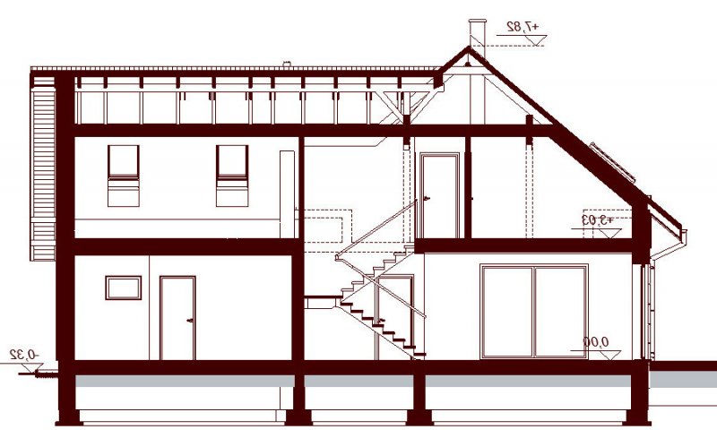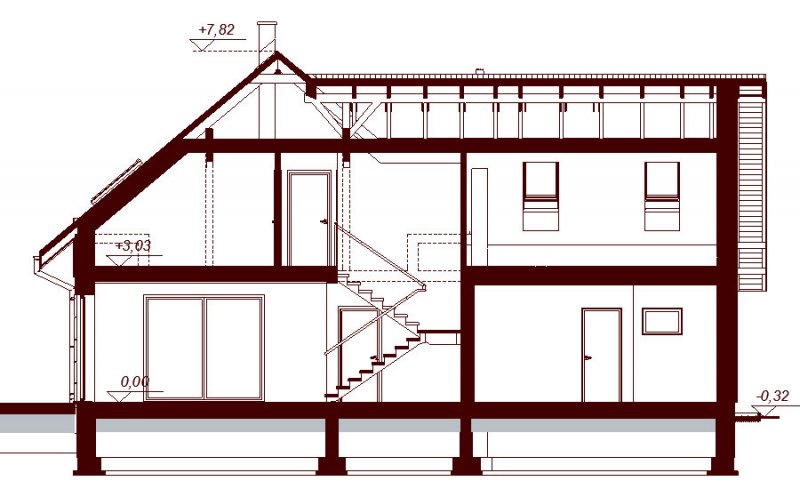 Ścianki wewnętrze działowe: na parterze z bloczków, na poddaszu z płyt GK bądź z bloczków.