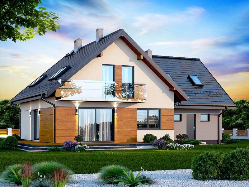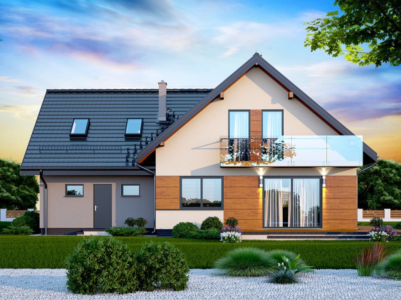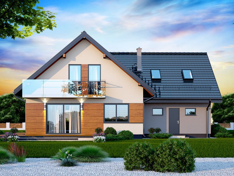 Elewacje: wykończone tynkiem mineralnym malowanym farbą silikatową.