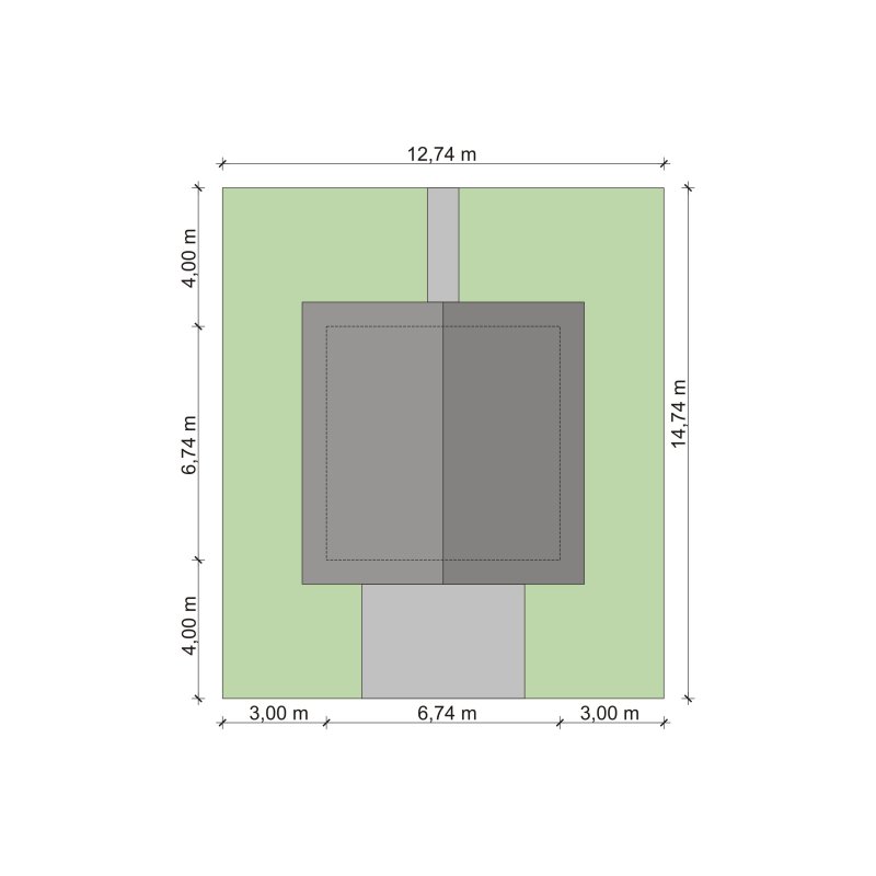 - Min. wymiary działki 12.74x14.74 m