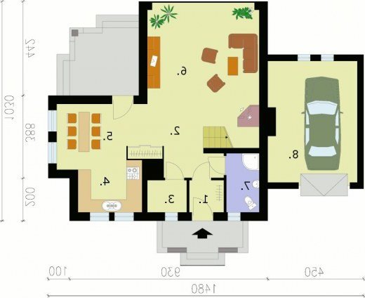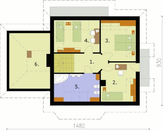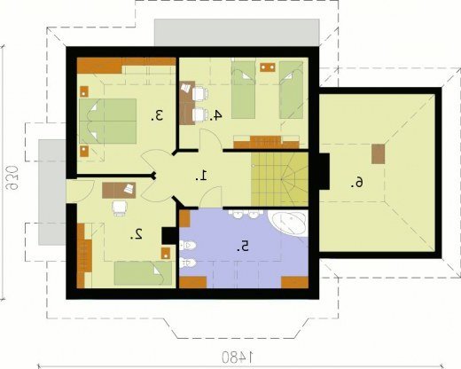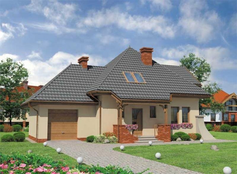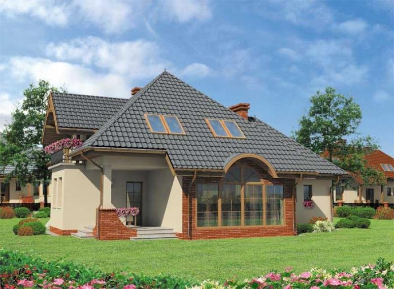 "Giza" To wyjątkowy projekt domku jednorodzinnego, niepodpiwniczonego, posiadającego możliwość adaptacji kotłowni na węgiel. Już na pierwszy rzut oka zachwyca niepowtarzalnością zastosowanych rozwiązań, łączących w sobie tradycjonalizm z nowoczesnością. Elewacja frontowa zwraca uwagę fantazyjnym wykończeniem na rogu ściany południowej i wschodniej oraz zadaszonym w uroczy sposób wejściem. Przewidziano tutaj jednostanowiskowy garaż. Tył domu natomiast zaskakuje ogromnymi oknami, wpuszczającymi światło do pokoju dziennego. Gdy, po wejściu do domu, przez wiatrołap, przejdziemy do komunikacji, po lewej stronie będziemy mieli łazienkę z miejscem na prysznic, a po prawej – kotłownię. Do południowo-wschodniej ściany domy przylega kuchnia, natomiast w ryzalicie, wychodzącym na wschód przewidziano miejsce na jadalnię. Jeżeli zdecydujemy się wznieść dom według projektu Giza, zachowując zaproponowaną tutaj orientację przestrzenną, przyjemnie będzie nam spożywać w tym miejscu wszystkie posiłki, szczególnie jednak śniadania, ponieważ możemy stąd obserwować wschodzące słońce. Na parterze domu mamy także pokój dzienny, gdzie przewidziano miejsce na kominek. W komunikacji, pomiędzy jadalnią a pokojem gościnnym, przewidziano wyjście, na umieszczony z tyłu domu, taras. W letnie dni może on przejąć funkcję jadalni. Na poddaszu, stanowiącym część nocną domu, zaprojektowano dużą łazienkę, którą możemy urządzić zgodnie z naszym gustem, na co zapewne pozwoli nam jej ogromna powierzchnia. Na piętrze znajdują się także trzy obszerne pokoje. Warto zwrócić uwagę na fakt, iż prawie wszystkie pomieszczenia poddasza (wyłączając pokój z wyjściem na balkon), posiadają tylko i wyłącznie okna połaciowe, co w znacznym stopniu ułatwi ustawienie mebli w tak zaprojektowanych pokojach. Takie rozwiązanie daje również możliwość ciekawego rozmieszczenia różnych elementów łazienki. Ponadto na poddaszu przewidziano także strych, gdzie będziemy mogli umieścić zbędne sprzęty. W projekcie nie zostało wyodrębnione pomieszczenie gospodarcze, więc taki strych znacznie ułatwi nam zatem przechowywanie różnych rzeczy, z których nie będziemy na bieżąco korzystać.