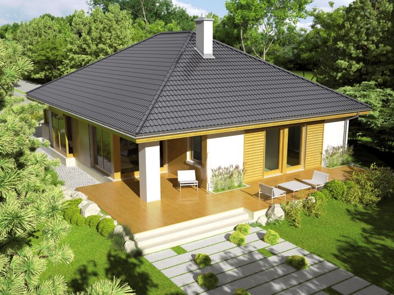Glen IV G1 to dom zaprojektowany w zgodzie z aktualnymi trendami w architekturze. Smukłe, geometryczne kształty budynku doskonale współgrają z modną kompozycją elewacji i szerokimi przeszkleniami. Wnętrze z powodzeniem dopasuje się do rytmu życia rodziny, ciesząc domowników wygodnym układem funkcjonalnym. Atrakcyjnym elementem domu jest zadaszony taras, który od wiosny do późnej jesieni pełni rolę wspaniałego salonu na świeżym powietrzu.