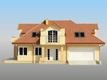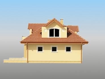 Na parterze zaprojektowano salon z kominkiem , pokój (gabinet),kuchnię , aneks jadalny otwarty na salon, łazienkę, hall, wiatrołap, kotłownię ( pom. gosp.) oraz garaż na dwa samochody