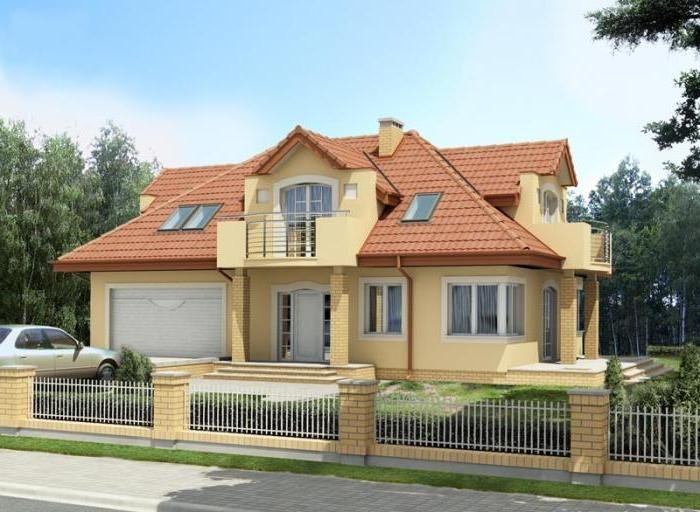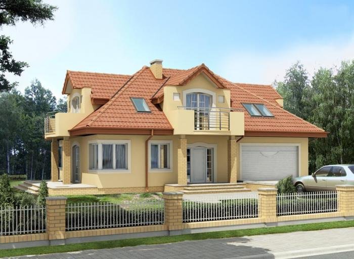 Dach o konstrukcji drewnianej z pokryciem z dachówki ceramicznej, cementowej lub blachodachówki.