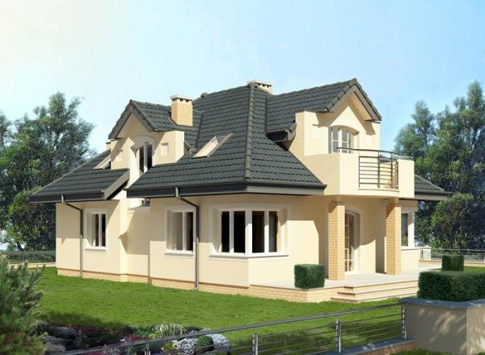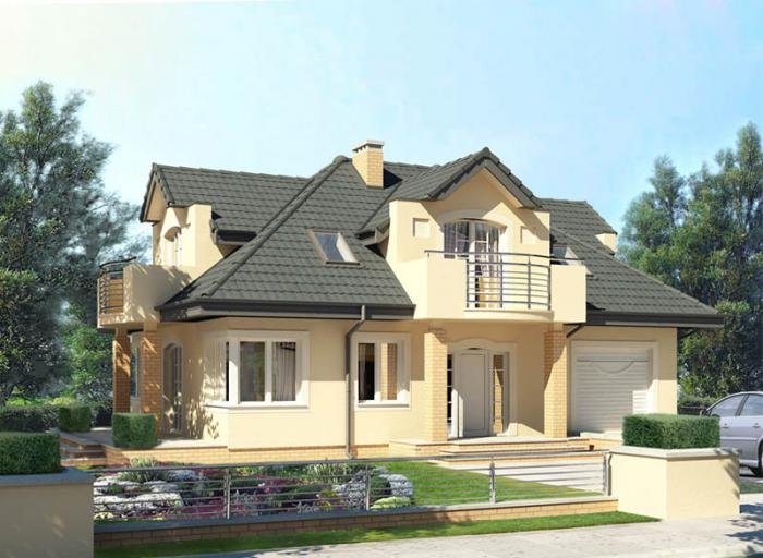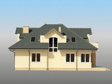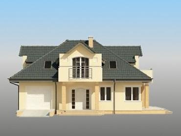 Jednorodzinny dom parterowy z poddaszem użytkowym i garażem jednostanowiskowym, niepodpiwniczony