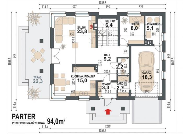 - Min. wymiary działki 20.64x17.64 m