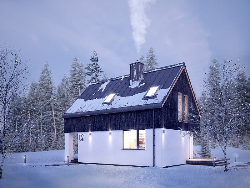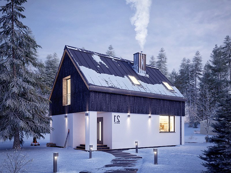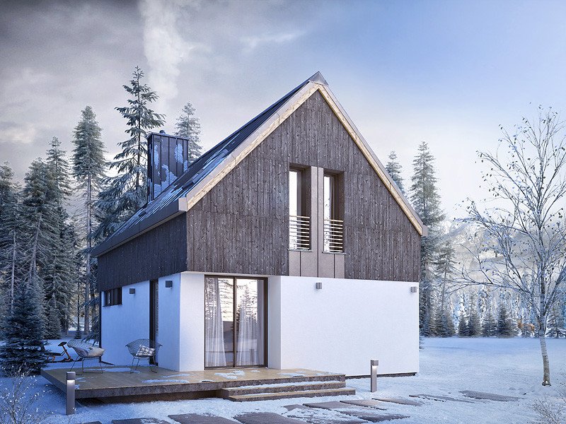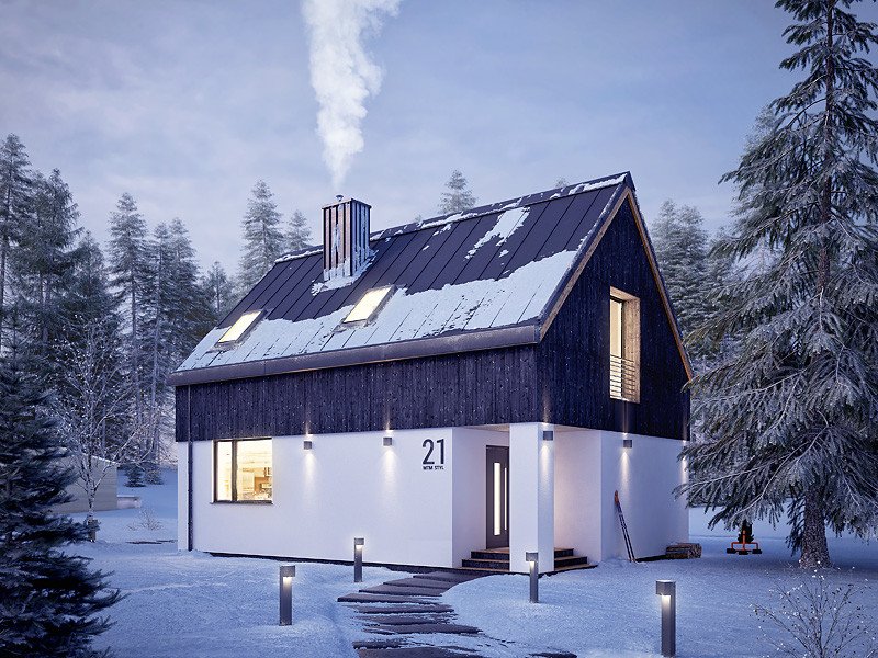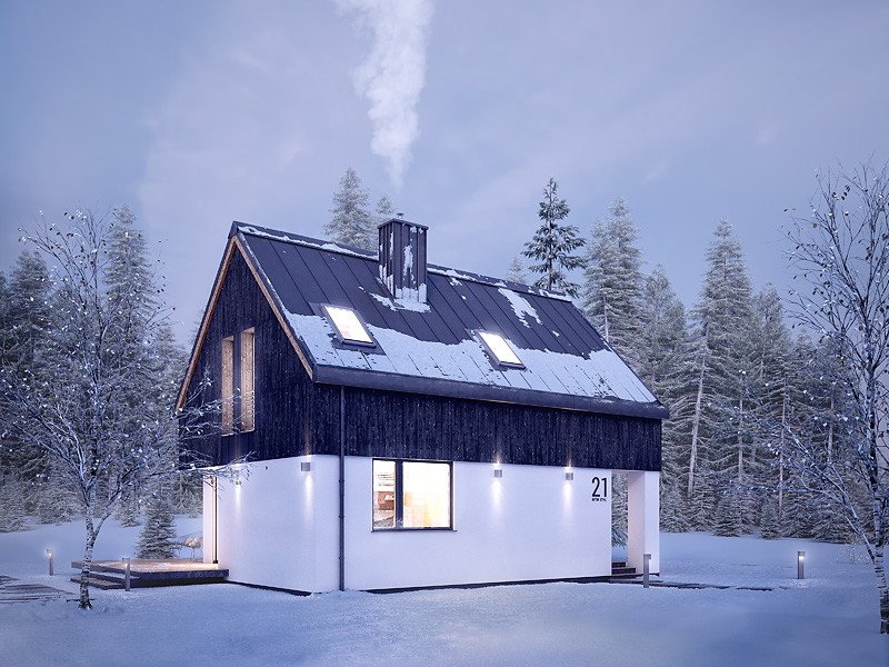 - Dach: blacha na rąbek stojący Classic (Ruukki), kąt nachylenia 45°.