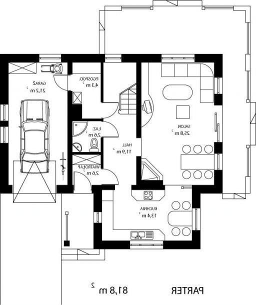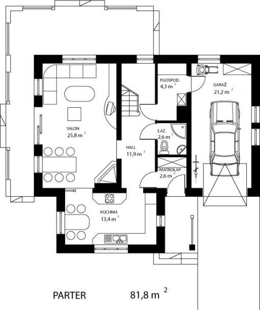 * dzienną (parter), w skład której wchodzą - wiatrołap; hall; łazienka; kuchnia; salon; pom. gospodarcze i garaż;
