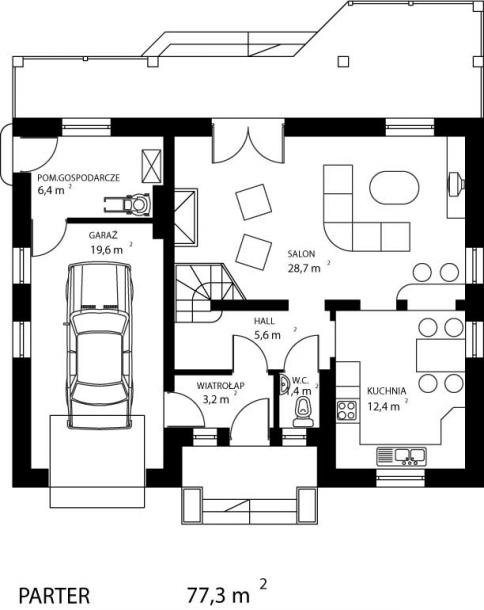 * dzienną (parter), w skład której wchodzą - wiatrołap; hall; W.C.; kuchnia; salon; kotłownia i garaż;