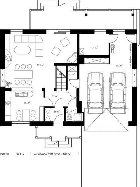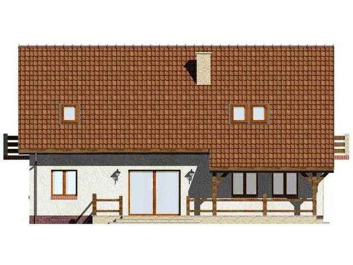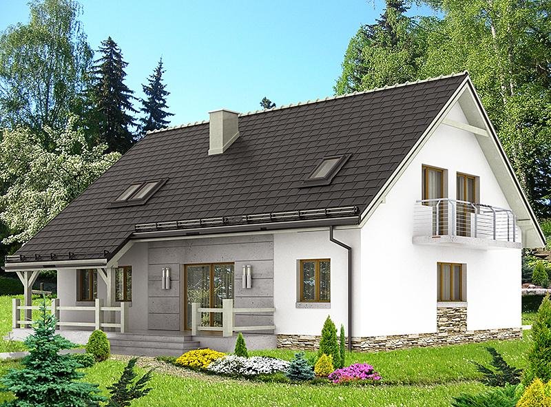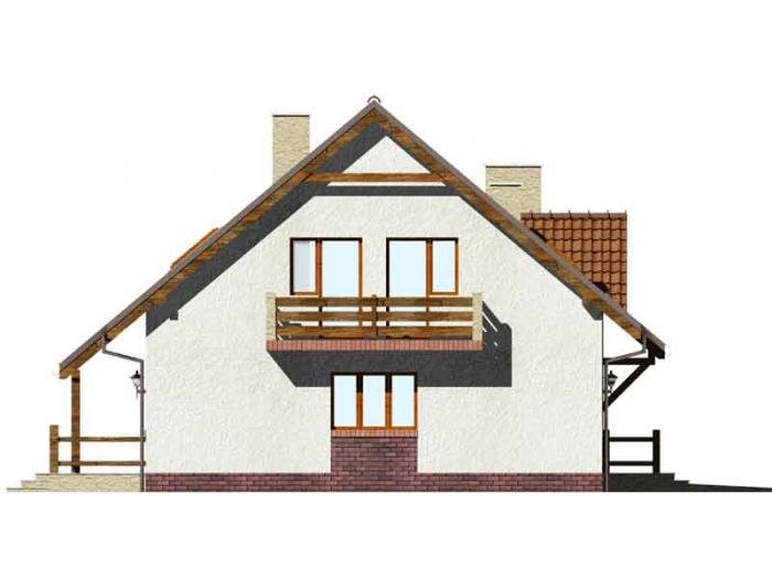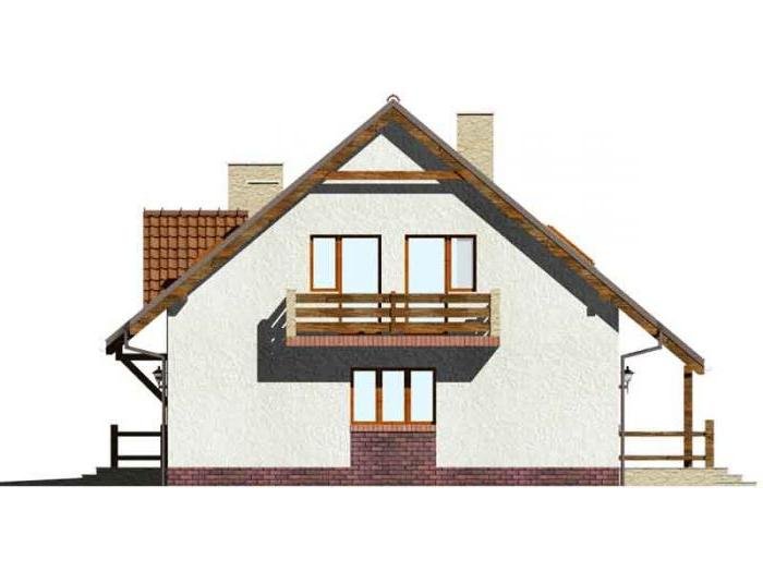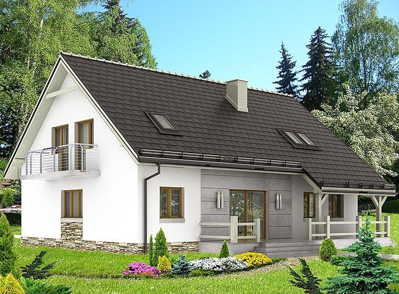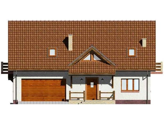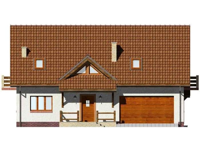 Budynek wolnostojący, parterowy (niepodpiwniczony) z użytkowym poddaszem. Wersja projektu z garażem dwustanowiskowym.