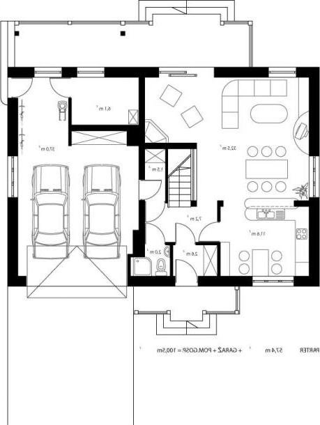 * dzienną (parter), w skład której wchodzą - wiatrołap; hall; W.C.; kuchnia; salon; kotłownia i garaż (dwustanowiskowy);
