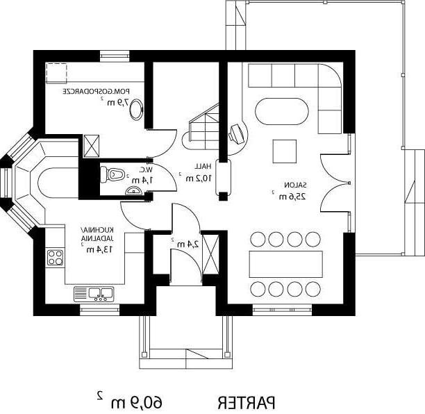 * dzienną (parter), w skład której wchodzą - wiatrołap; hall; W.C.; pralnia.; kuchnia; salon;