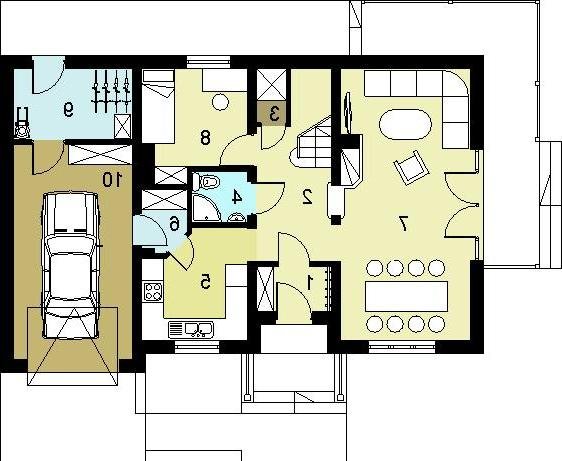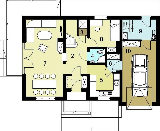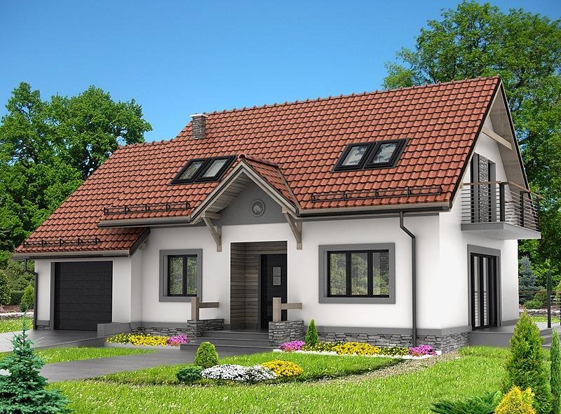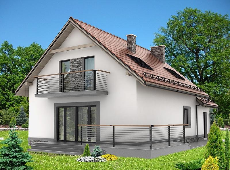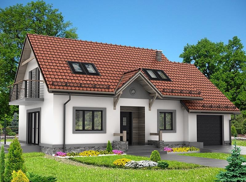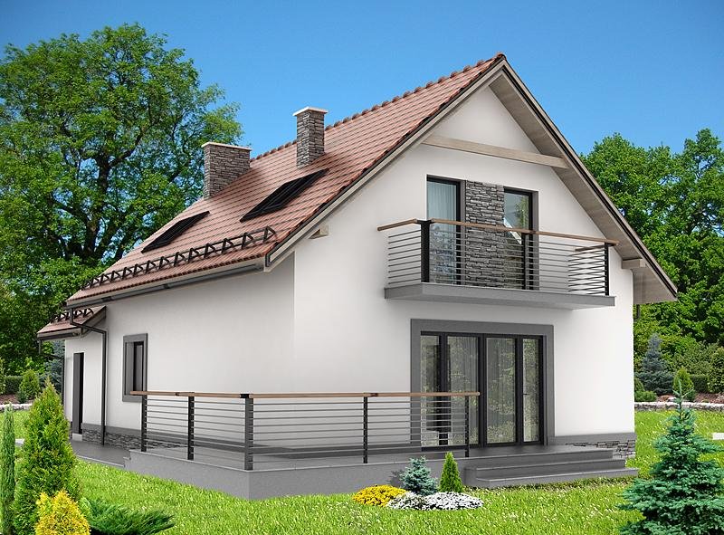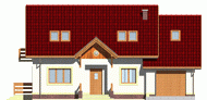 Dom jednorodzinny, przeznaczony dla 4 - 5 osobowej rodziny. Budynek wolnostojący, parterowy (niepodpiwniczony) z użytkowym poddaszem. W budynku zaprojektowano dwie strefy: dzienną (parter), w skład której wchodzą - wiatrołap; hall, schowek, łazienka; kuchnia, spiżarnia, salon/jadalnia; pokój; kotłownia i garaż