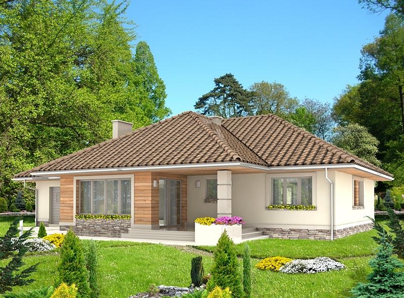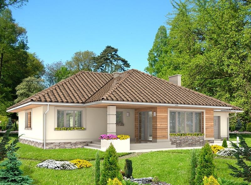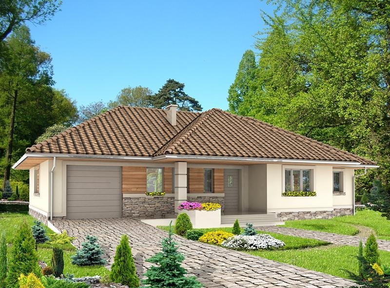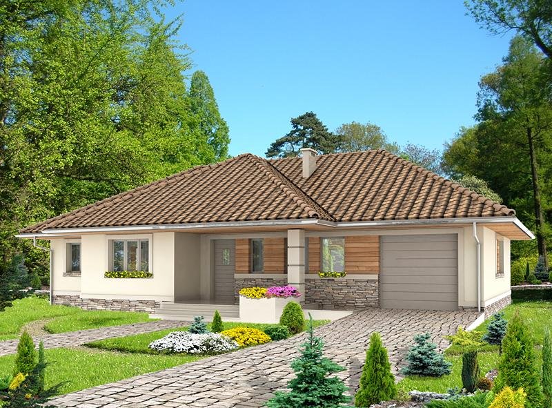 Dom jednorodzinny, przeznaczony dla 4 osobowej rodziny. Budynek wolnostojący, parterowy (niepodpiwniczony) z nieużytkowym poddaszem