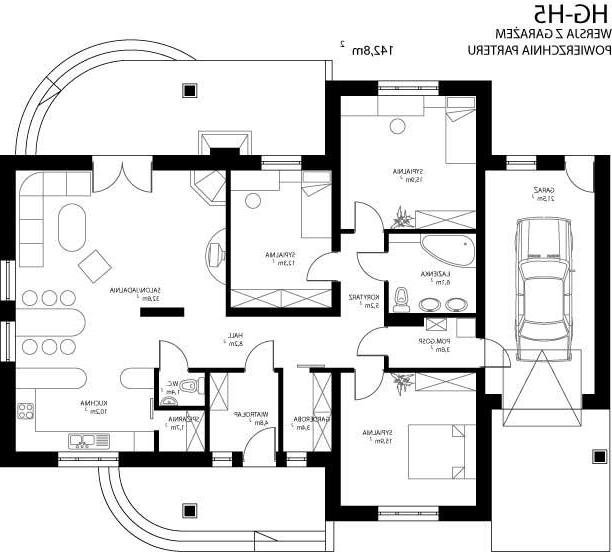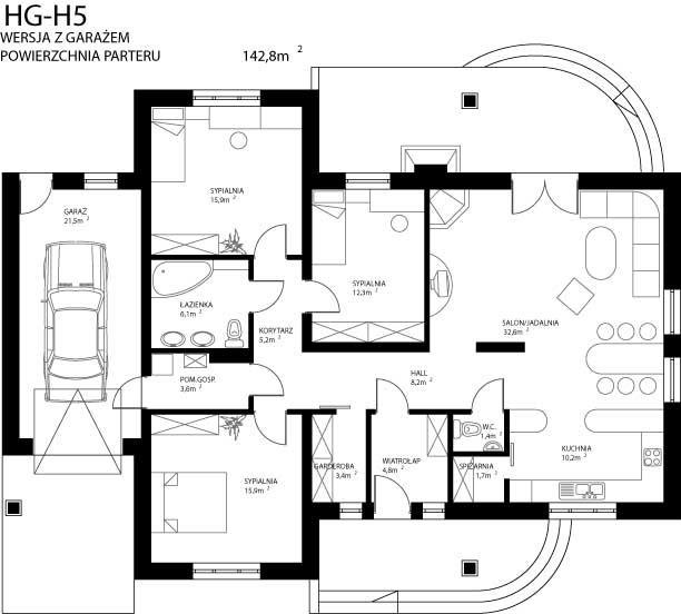 * dzienną, w skład której wchodzą - wiatrołap; hall; kuchnia; salon; w.c.; spiżarnia; pom. gospodarcze i garaż.
