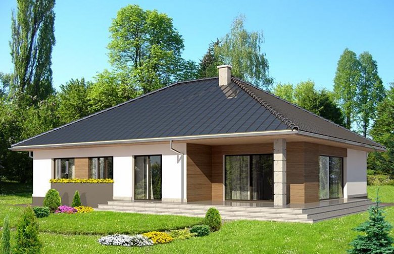 Dom jednorodzinny, przeznaczony dla 4 osobowej rodziny. Budynek wolnostojący, parterowy (niepodpiwniczony) z nieużytkowym poddaszem.