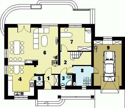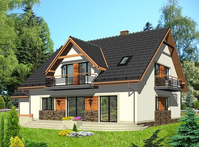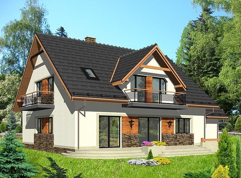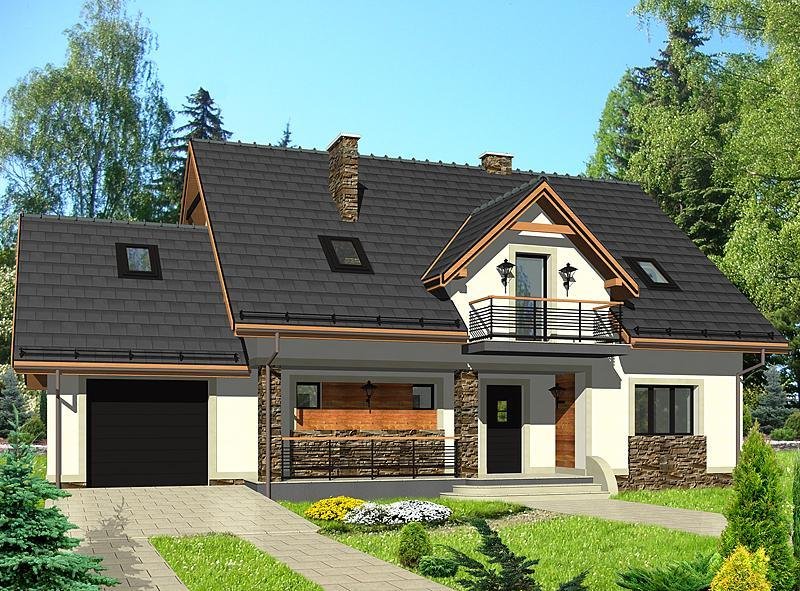 Dom jednorodzinny, przeznaczony dla 4 - 5 osobowej rodziny. Budynek wolnostojący, parterowy (niepodpiwniczony) z użytkowym poddaszem.