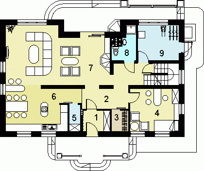 Dom jednorodzinny, przeznaczony dla 4 - 5 osobowej rodziny. Budynek wolnostojący, parterowy (podpiwniczony) z użytkowym poddaszem.