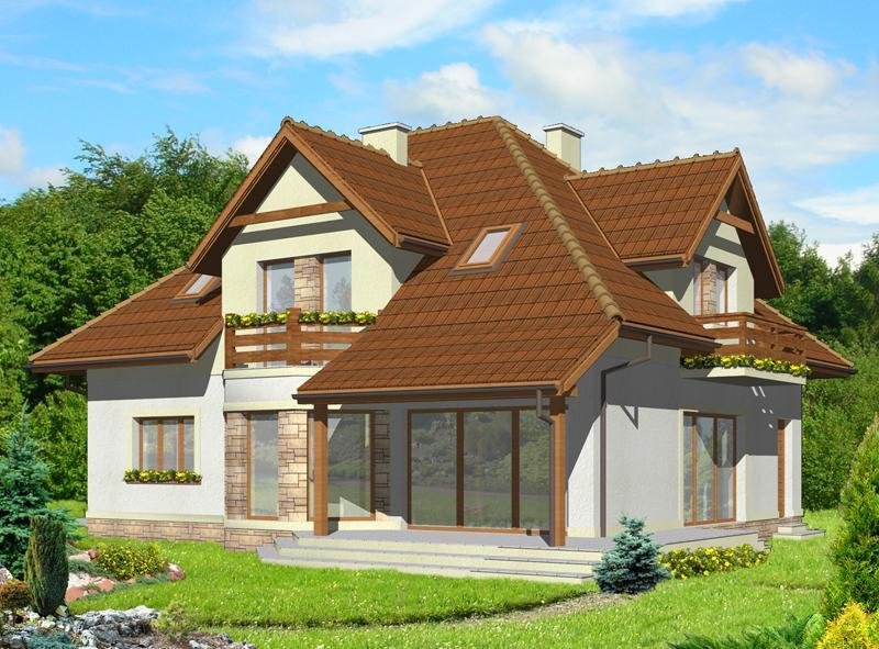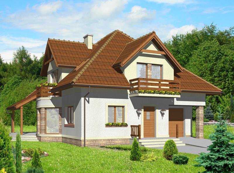 Dom jednorodzinny, przeznaczony dla 4 - 5 osobowej rodziny. Budynek wolnostojący, parterowy (niepodpiwniczony) z użytkowym poddaszem.