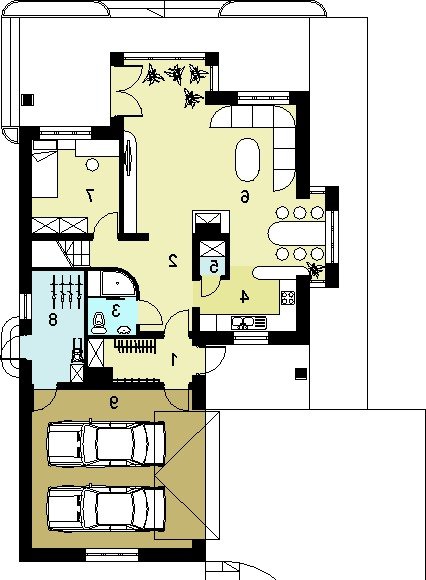 dzienną (parter), w skład której wchodzą - wiatrołap; hall; łazienka; kuchnia, jadalnia; salon; pokój; spiżarnia; pom. gospodarcze i podwójny garaż;