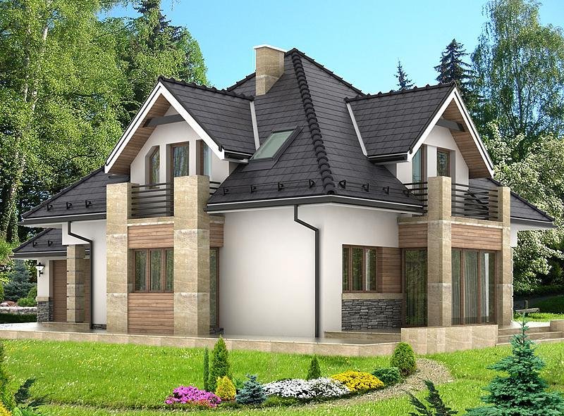 Dom jednorodzinny, przeznaczony dla 4 - 5 osobowej rodziny. Budynek wolnostojący, parterowy (niepodpiwniczony) z użytkowym poddaszem.