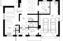 * dzienną (parter), w skład której wchodzą - wiatrołap; hall; łazienka; kuchnia; salon/jadalnia; pokój; garderoba; spiżarnia; kotłownia i garaż (dwustanowiskowy);