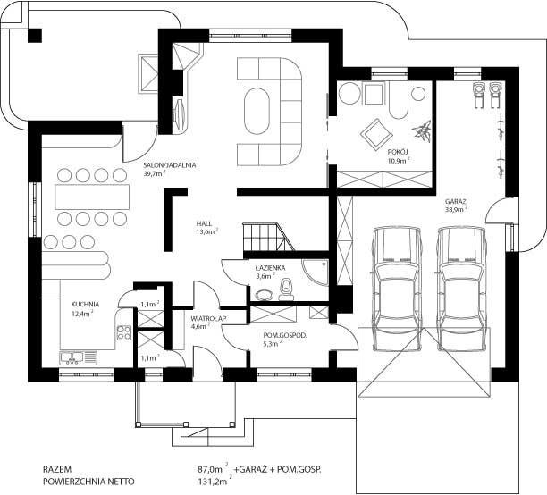 - Garaż 38,9 m2