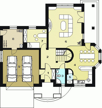 *dzienną (parter), w skład której wchodzą - wiatrołap; hall; łazienka; kuchnia/jadalnia; salon; pokój; kotłownia i garaż (dwustanowiskowy);