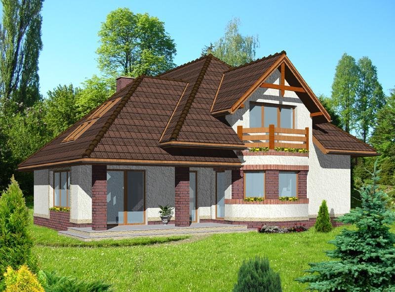 Dom jednorodzinny, przeznaczony dla 4 - 5 osobowej rodziny. Budynek wolnostojący, parterowy (niepodpiwniczony) z użytkowym poddaszem.