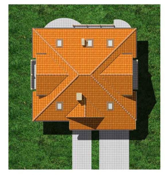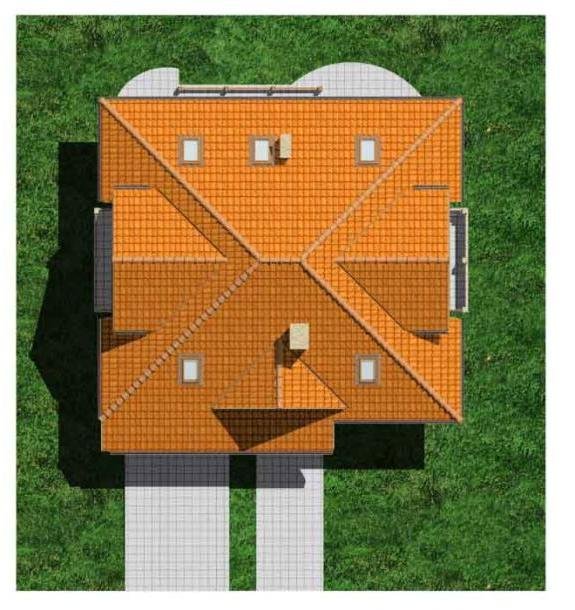 Konstrukcja dachu drewniana, krycie dachówką ceramiczną. Kąt nachylenia połaci 37