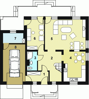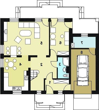 *dzienną (parter), w skład której wchodzą - wiatrołap; hall; łazienka; kuchnia; salon; gabinet; kotłownia i garaż;