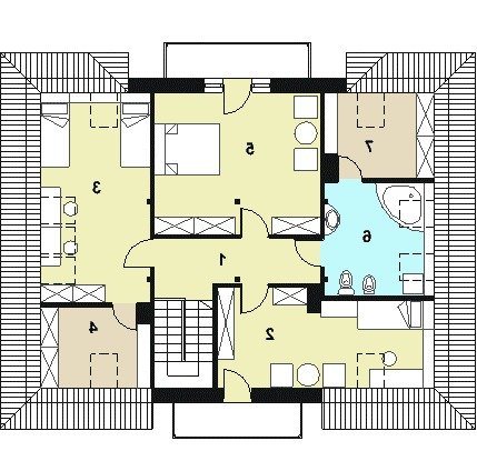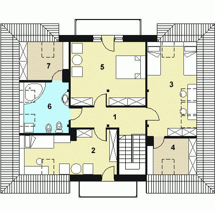 *nocną (poddasze), w której znajdują się trzy sypialnie, dwie garderoby i łazienka
