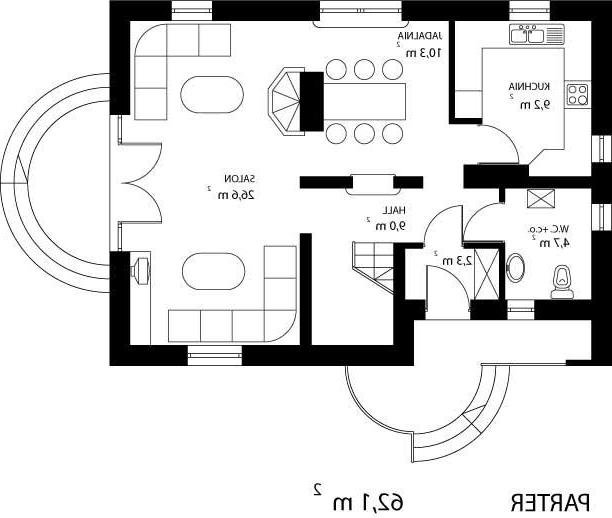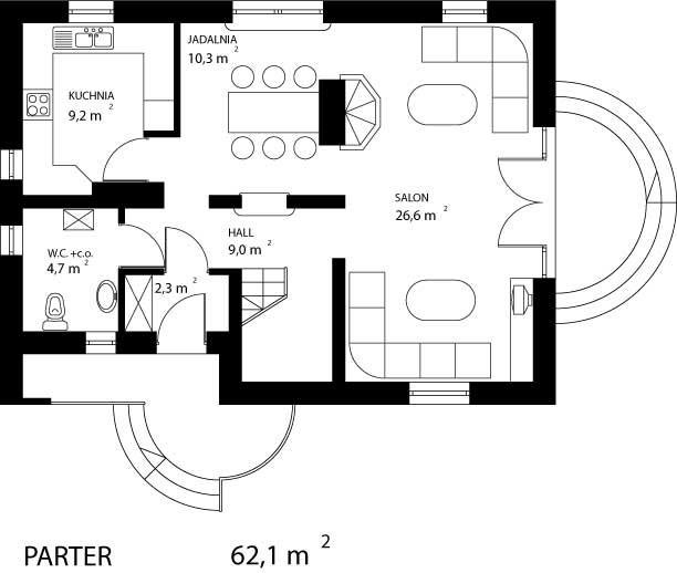 * dzienną (parter), w skład której wchodzą - wiatrołap; hall; W.C.; kuchnia; salon i jadalnia;