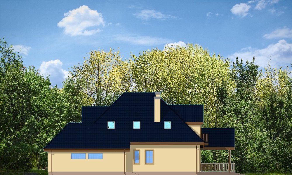 Hornówek to dom jednorodzinny dla rodziny cztero-pięcioosobowej. Wyróżnia go o atrakcyjna, rozłożysta bryła z łagodnym wielospadowym dachem, w który wkomponowano duże lukarny. Obszerny podcień frontowy i weranda od strony ogrodu chronią przed deszczem lub zbyt ostrym słońcem. Wnętrze zaprojektowano z podziałem na część dzienną - otwartą i jednoprzestrzenną, łączącą się poprzez szerokie przeszklenia z ogrodem, oraz część gospodarczą z garażem dwustanowiskowym. W bocznym skrzydle domu zaplanowano dodatkowy pokój na parterze - gabinet lub sypialnię gościnną. Całość wnętrza łączy reprezentacyjny holl z wygodnymi schodami na poddasze. Na piętrze zaprojektowano trzy sypialnie - w tym jedna z osobną łazienką i garderobą, z balkonem z widokiem na ogród. Na poddaszu umieszczono jeszcze dodatkowy - czwarty pokój. Dostępna jest wersja odbicia lustrzanego projektu.