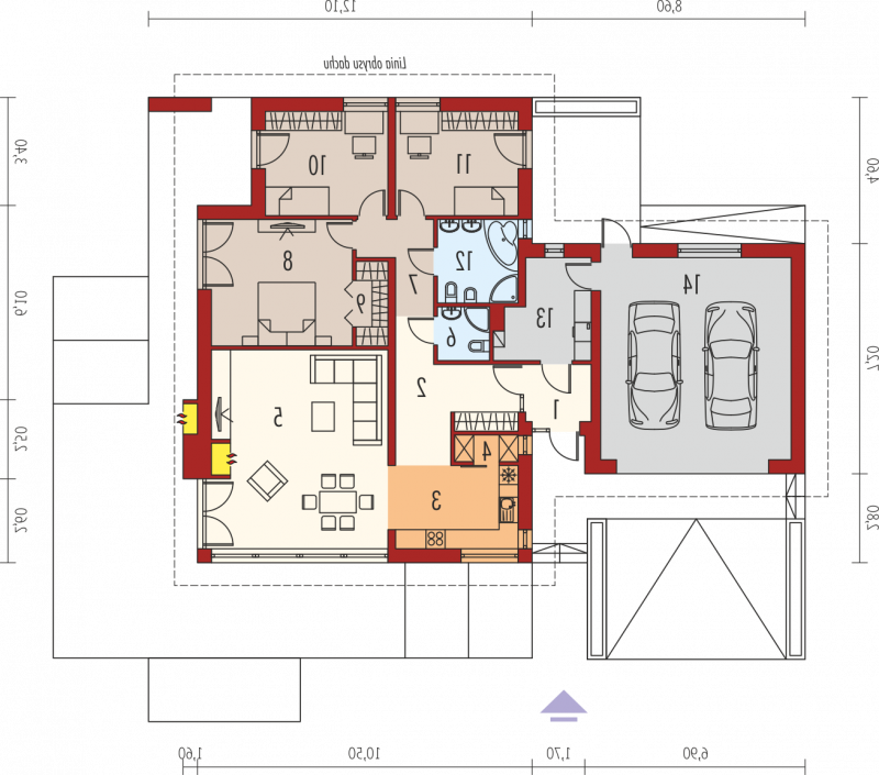 - Kąt nachylenia dachu 24.00°