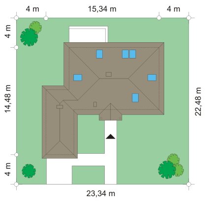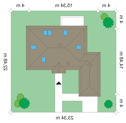 - Min. wymiary działki 23.34x22.48 m