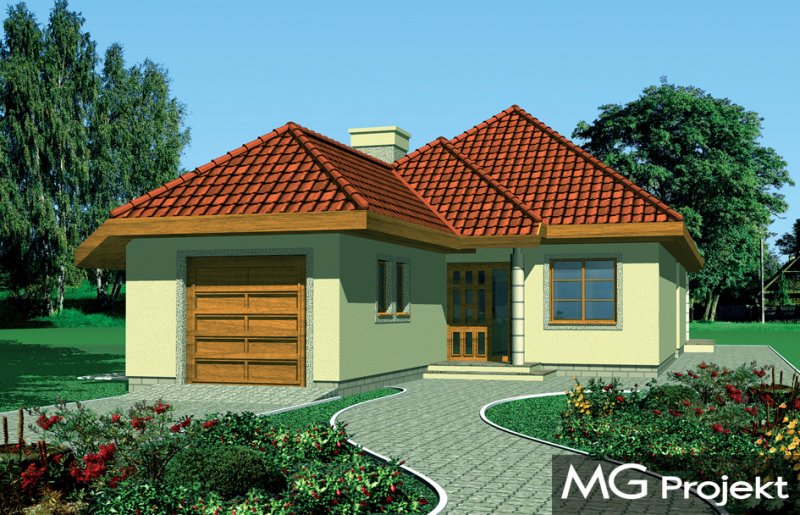 Jamnik 2 to wygodny dom na wąską działkę - nawet 15-metrową. Bryła przekryta wielospadowym dachem. Projekt domu posiada dobudowany garaż. Wnętrze domu zaprojektowano tak, aby była możliwość zamieszkania w pierwszym etapie tylko na parterze. Poddasze, na którym przewidziano dodatkowe pokoje można zagospodarować już mieszkając lub zostawić strych. Wnętrze salonu z jadalnią i holem tworzy dużą otwartą przestrzeń dzienną. Z salonu wychodzimy na zadaszony taras. Pracownia dysponuje również wersją projektu w dobiciu lustrzanym.