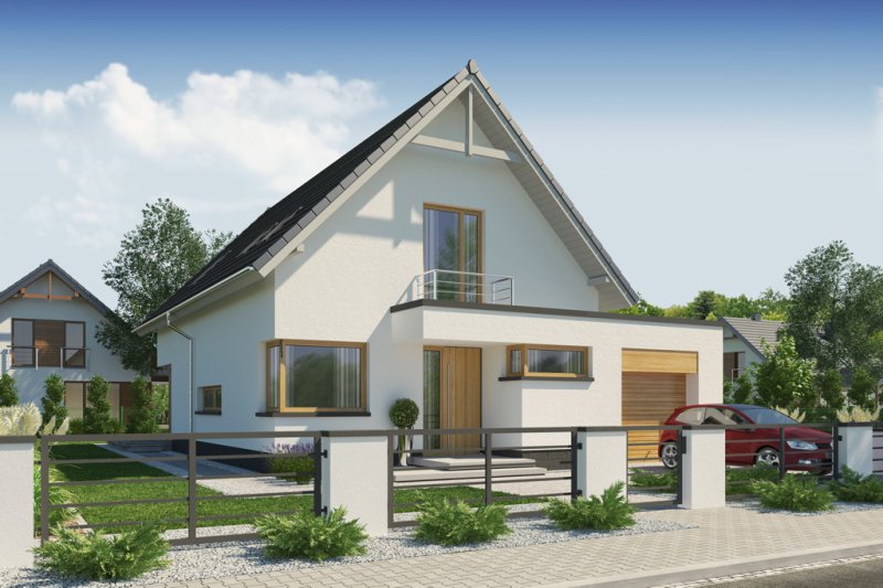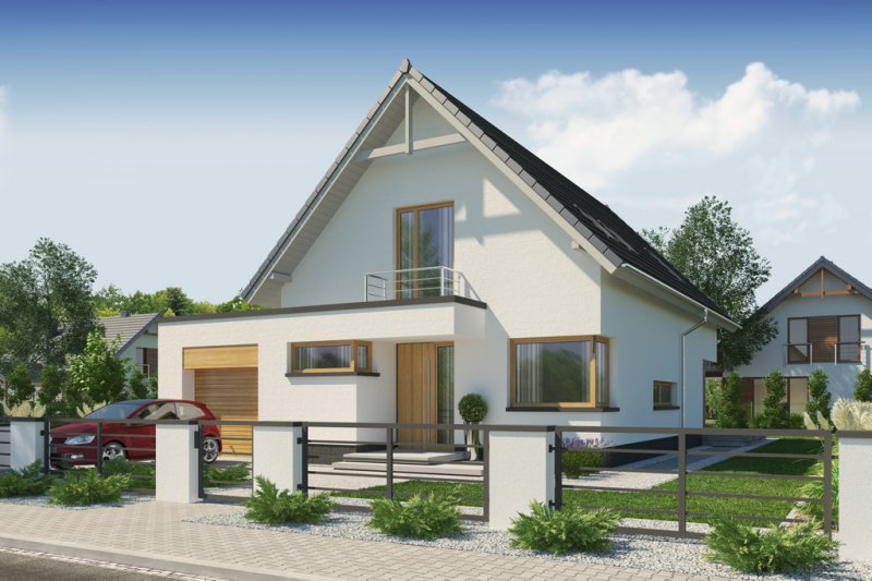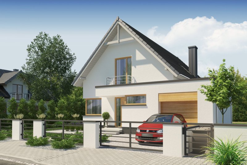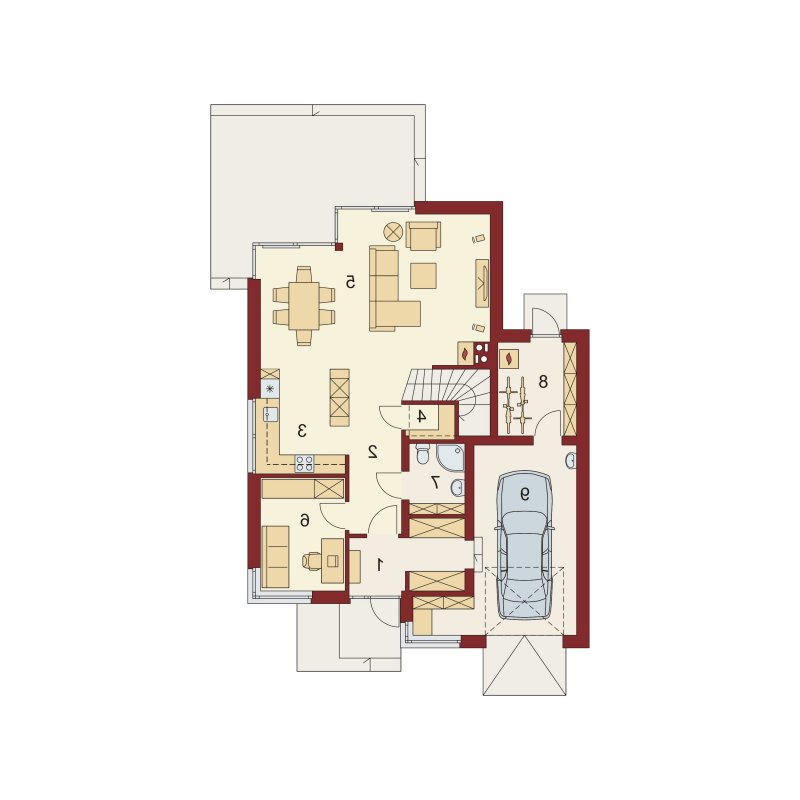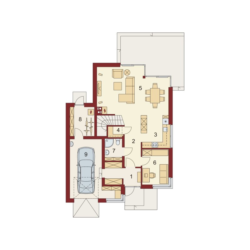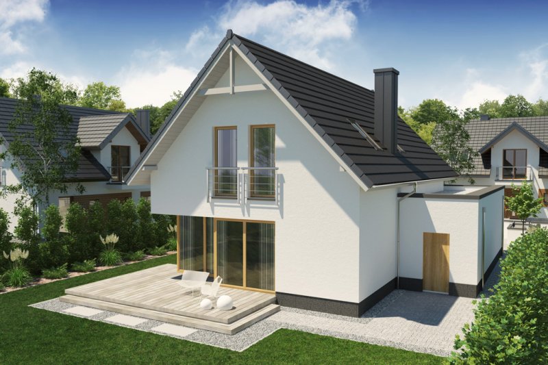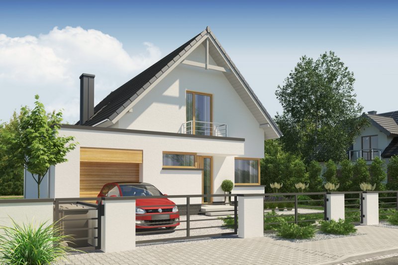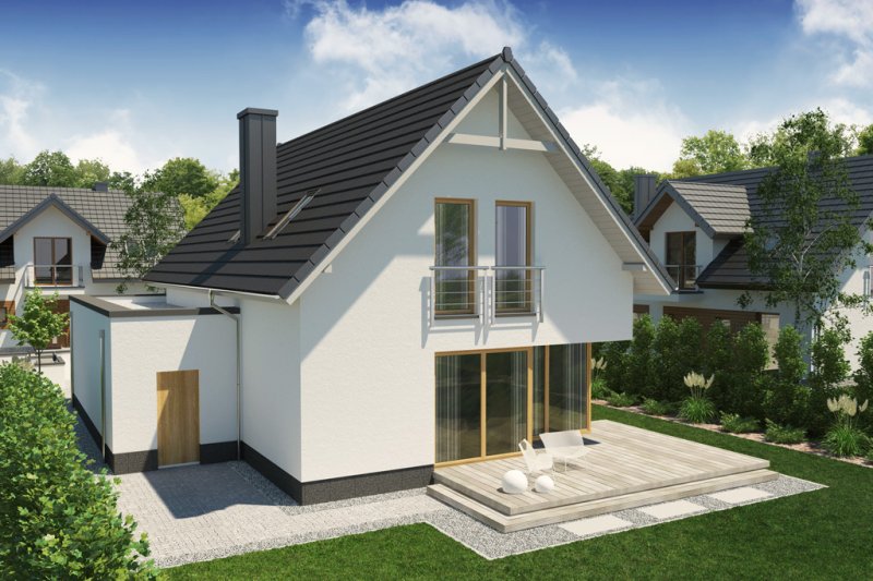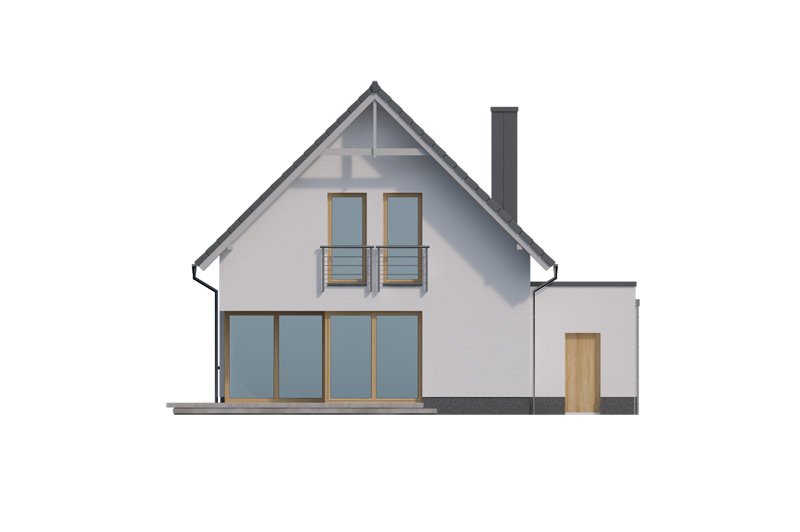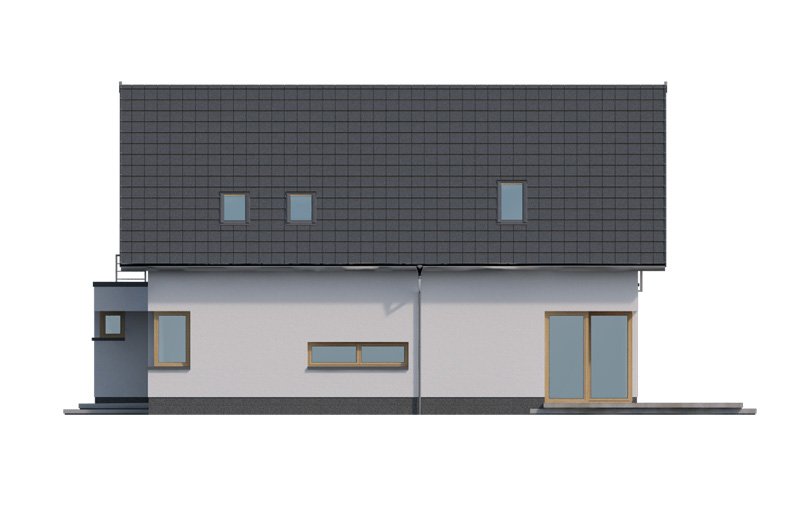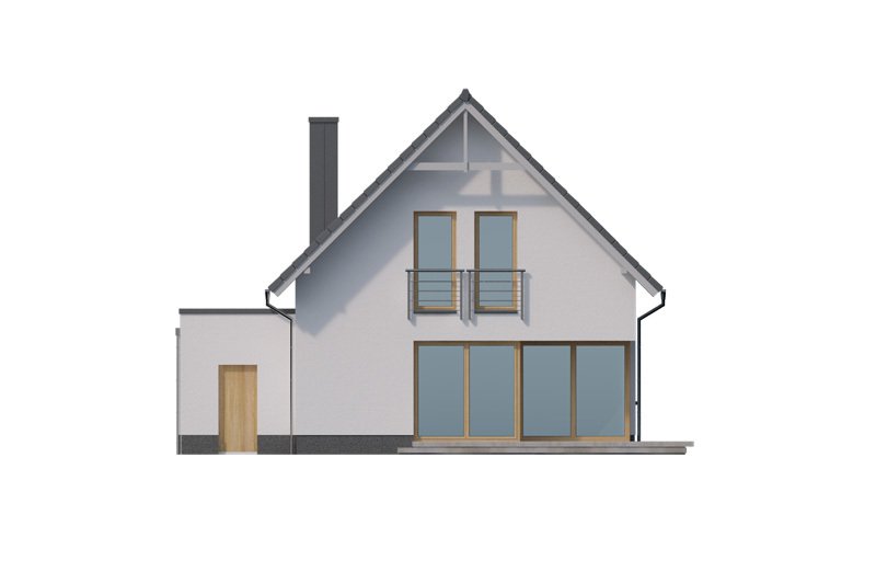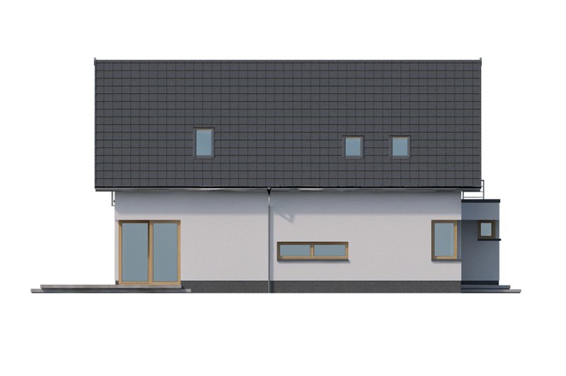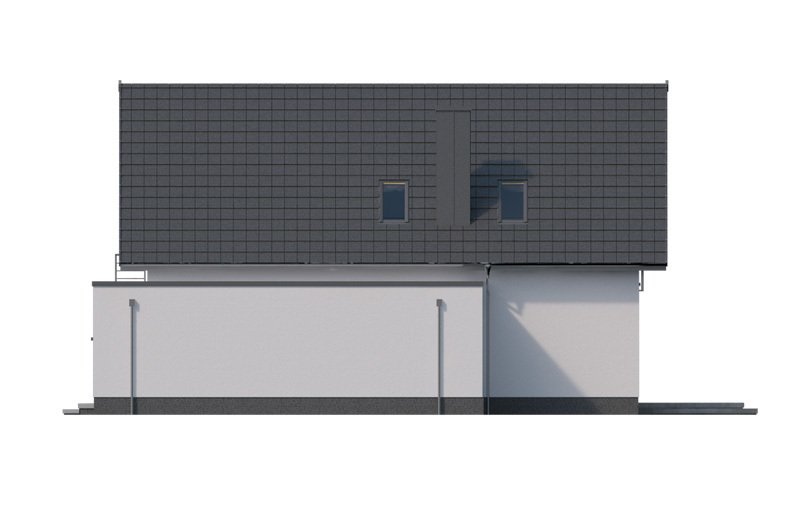 JANUARY PS to parterowy dom z poddaszem użytkowym przeznaczony na wąską działkę i zaprojektowany dla 4-5-osobowej rodziny. Na parterze znajduje się: przestronny salon z jadalnią i wyjściem na zacieniony podcieniem taras, łatwa do zamknięcia w ramach adaptacji kuchnia ze zlokalizowaną pod schodami spiżarnią oraz gabinet, który wraz ze położoną niedaleko łazienką doskonale sprawdzi się także jako pokój gościnny czy sypialnia. Dodatkowo znajdziemy tu kotłownię i jednostanowiskowy garaż do którego dojść można przez pomieszczenie pełniące funkcję przestronnej garderoby dostępnej z wiatrołapu.