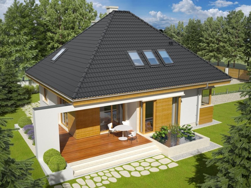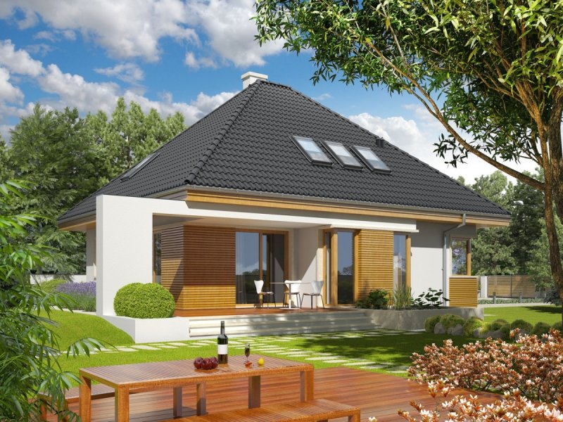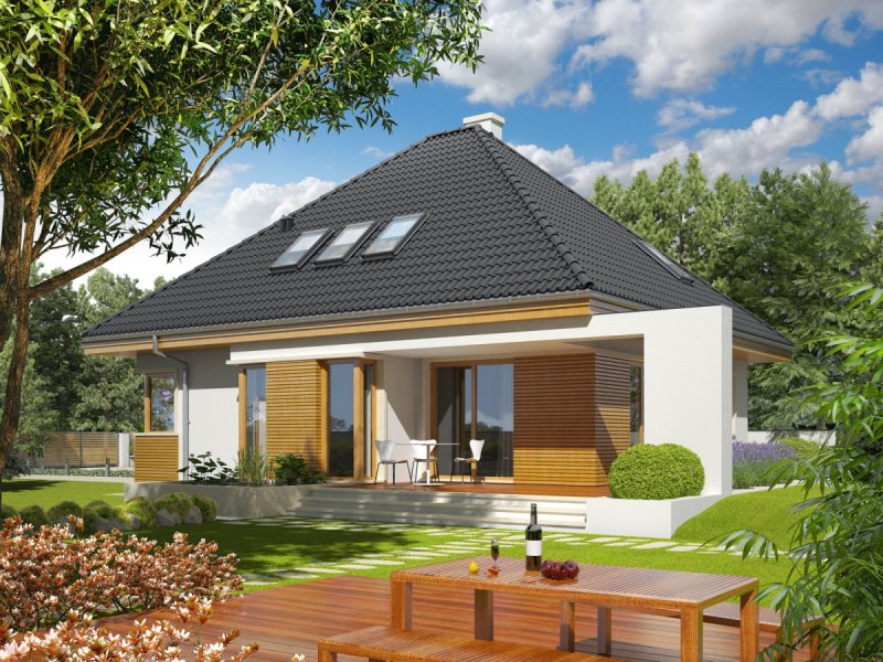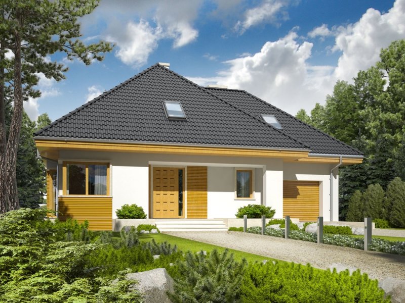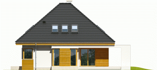 Dom parterowy z poddaszem użytkowym, niepodpiwniczony, z garażem jednostanowiskowym. Przeznaczony dla 4-5-osobowej rodziny. Na parterze zaprojektowano strefę dzienną: salon z kominkiem, jadalnię oraz kuchnię ze spiżarnią. Znalazł się tu również pokój, łazienka i duże pomieszczenie gospodarcze. Strefę nocną zlokalizowano na poddaszu. Tworzą ją trzy sypialnie, w tym jedna z garderobą oraz wygodna łazienka. Jarek II G1 od pierwszego wejrzenia czaruje swoim subtelnym wdziękiem. Atrakcyjna bryła domu została zaakcentowana ciekawymi detalami architektonicznymi. Gustowna biel tynku doskonale komponuje się z ciepłym odcieniem drewna, tworząc interesujący efekt wizualny. Atutem domu jest duża ilość przeszkleń, dzięki którym wnętrze jest rozświetlone i przytulne. Jarek II G1 to doskonała propozycja dla miłośników funkcjonalnych przestrzeni i nowoczesnego designu. Istnieje możliwość: - podpiwniczenia budynku - zbliźniaczenia - wykonania domu dwulokalowego