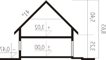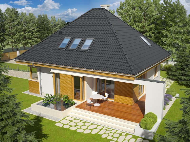 Dom zaprojektowany w technologii murowej ze stropem gęstożebrowym. Schody wewnętrzne żelbetowe. Dach o konstrukcji drewnianej pokryty dachówką ceramiczną Röben. Elewacje wykończono tynkiem mineralnym i okładziną drewnianą, cokół - tynkiem akrylowym. Stolarka okienna drewniana lub PCV.
