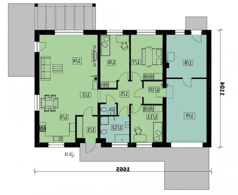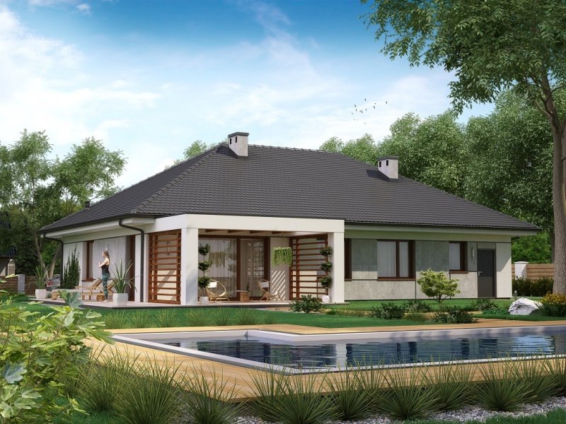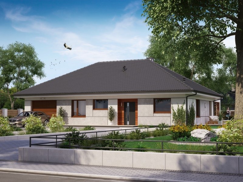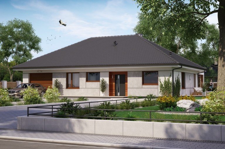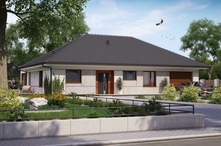 Parterowy dom jednorodzinny z trzema przestronnymi sypialniami dla 4 -5 osobowej rodziny. Dom posiada garaż jednostanowiskowy, kuchnię z jadalnią, salon, łazienkę i wc, garderobę oraz pomieszczenie gospodarcze.
